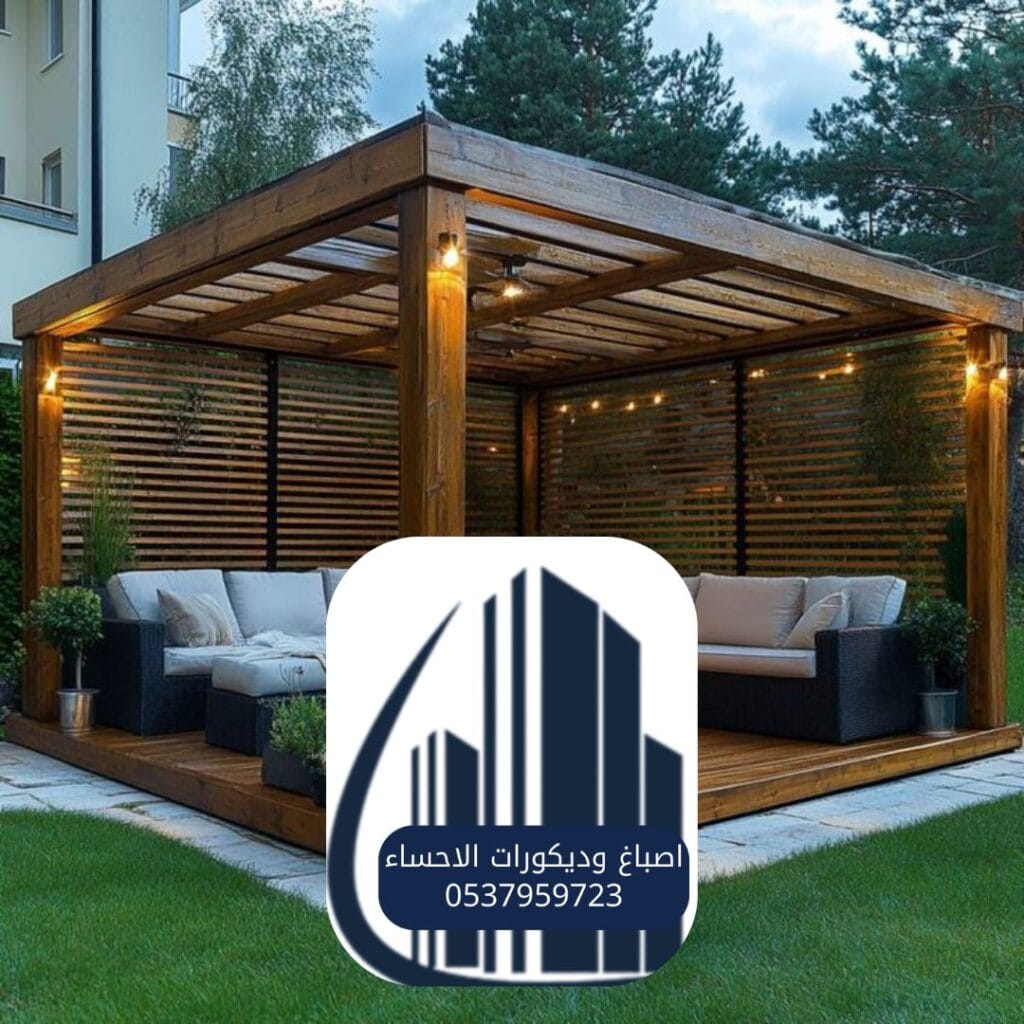 $$ مظلات خشب معالج اصباغ ديكورات الإحساء